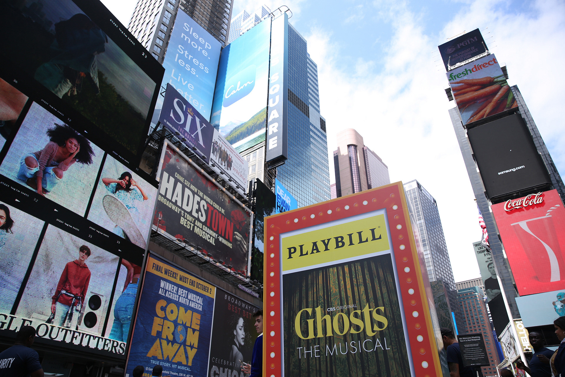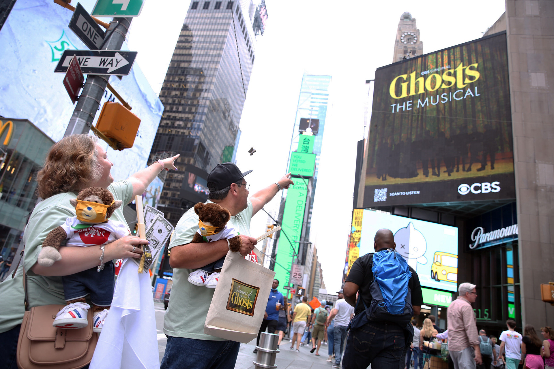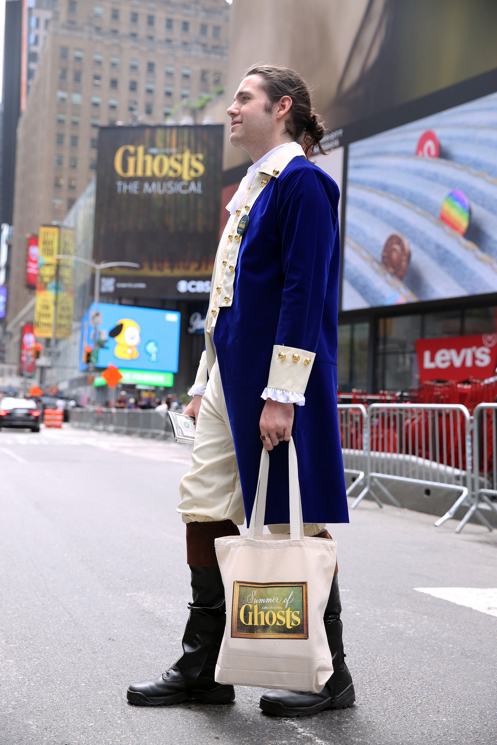 Isaac settled the score with Alexander Hamilton with a listening station for Ghosts: The Musical in Times Square